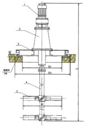 說明:本設備可根據水量及攪拌池尺寸設計雙層槳或多層槳,并可根據攪拌介質采用相應防腐或采用不銹鋼材質。